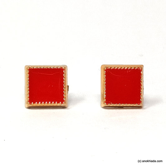 Anokhi Ada Red Square Shaped Small Plastic Stud Earrings for Girls ( AR-20j)
