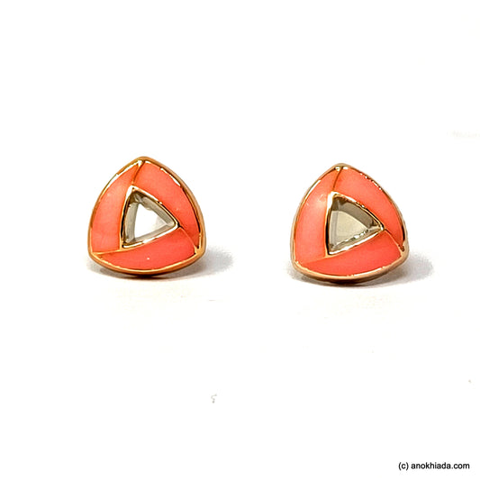 Anokhi Ada Light Pink Triangular Design Small Plastic Stud Earrings for Girls ( AR-18g)