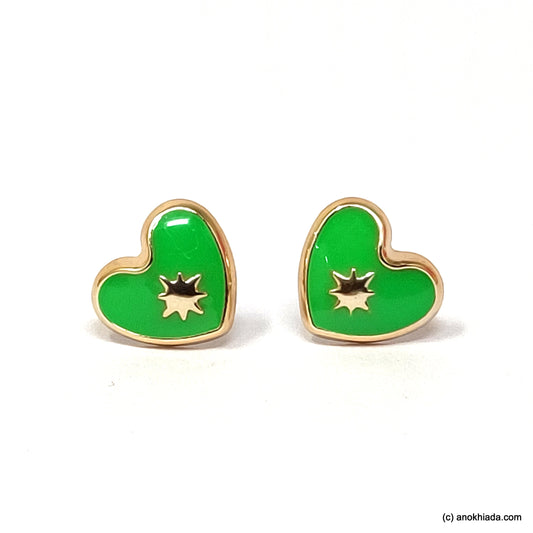 Anokhi Ada Green Heart Shaped Small Plastic Stud Earrings for Girls ( AR-18q)