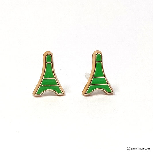 Anokhi Ada Green Eiffel Tower Shaped Small Plastic Stud Earrings for Girls ( AR-18s)