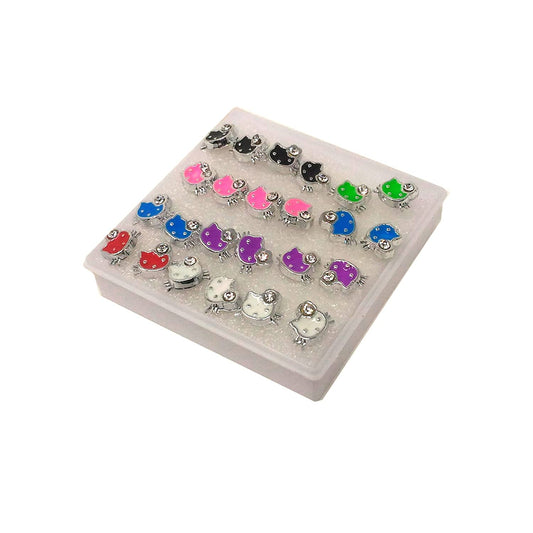 Anokhi ADA Multi-colour Rhinestone Studded Kitty Plastic Stud Earrings for Girls and Women (Pack of 12 Pairs)-(AR-13)