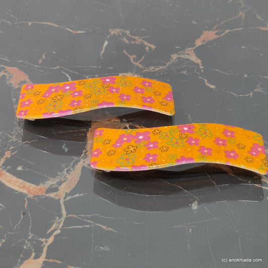Anokhi Ada Fancy Large Tik Tak Hair Clips (Orange, Pack of 2) 10-46