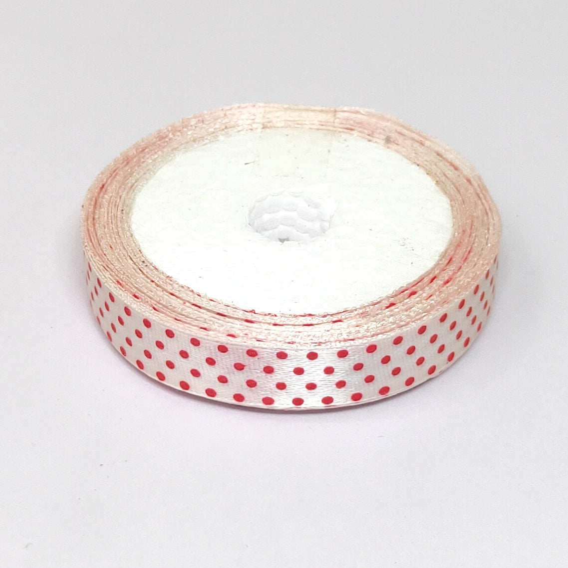 12.5 mm (Half Inch) Dot Print White Satin Ribbon (019)