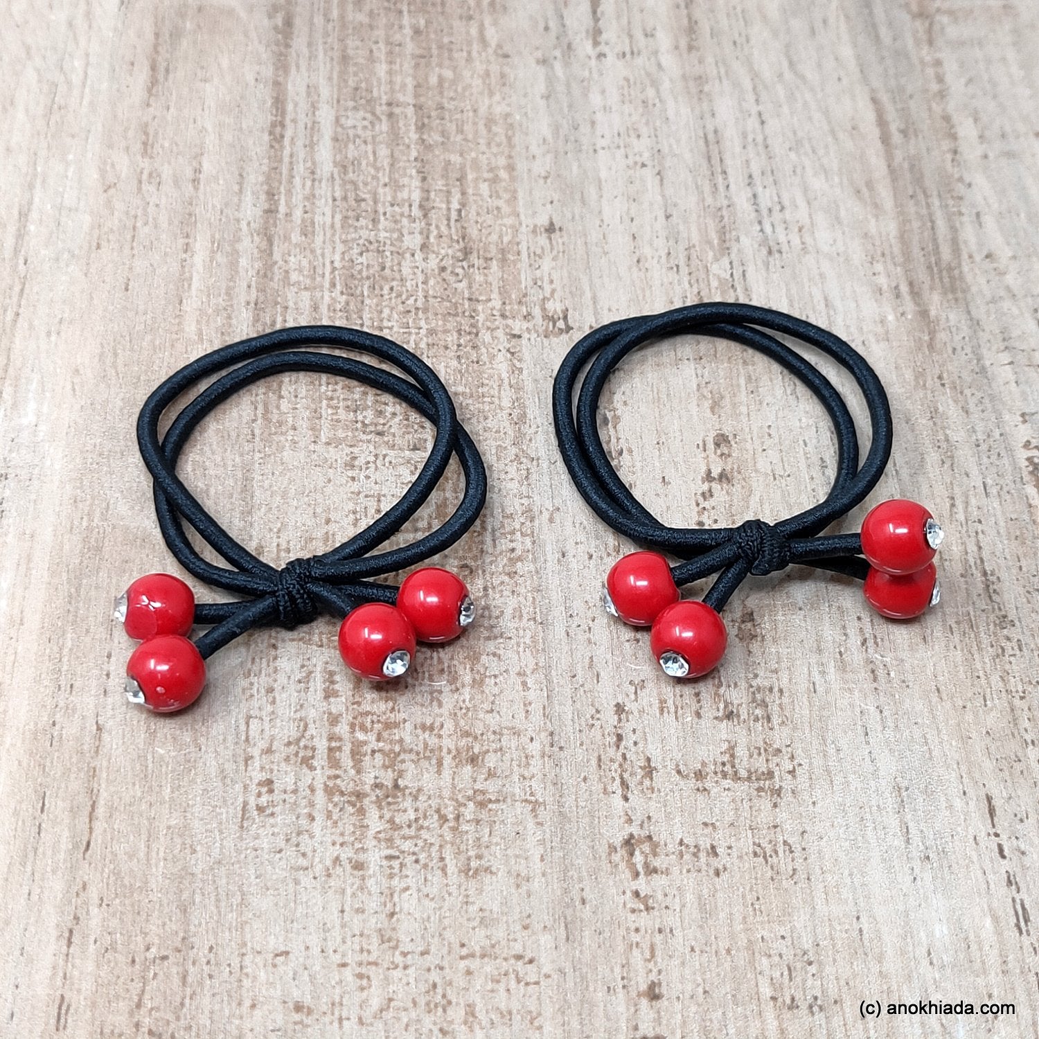 These Ponytail Holders/Rubbers from Anokhi Ada are made of Stretchable Elastic Fabric. Beautiful Variation for Girls and Women for Daily use and Everyday. These are comes in Pair of Black Colour with Red Rhinestone studded Beads. Small size Rubber Bands are perfect for any occasion.
