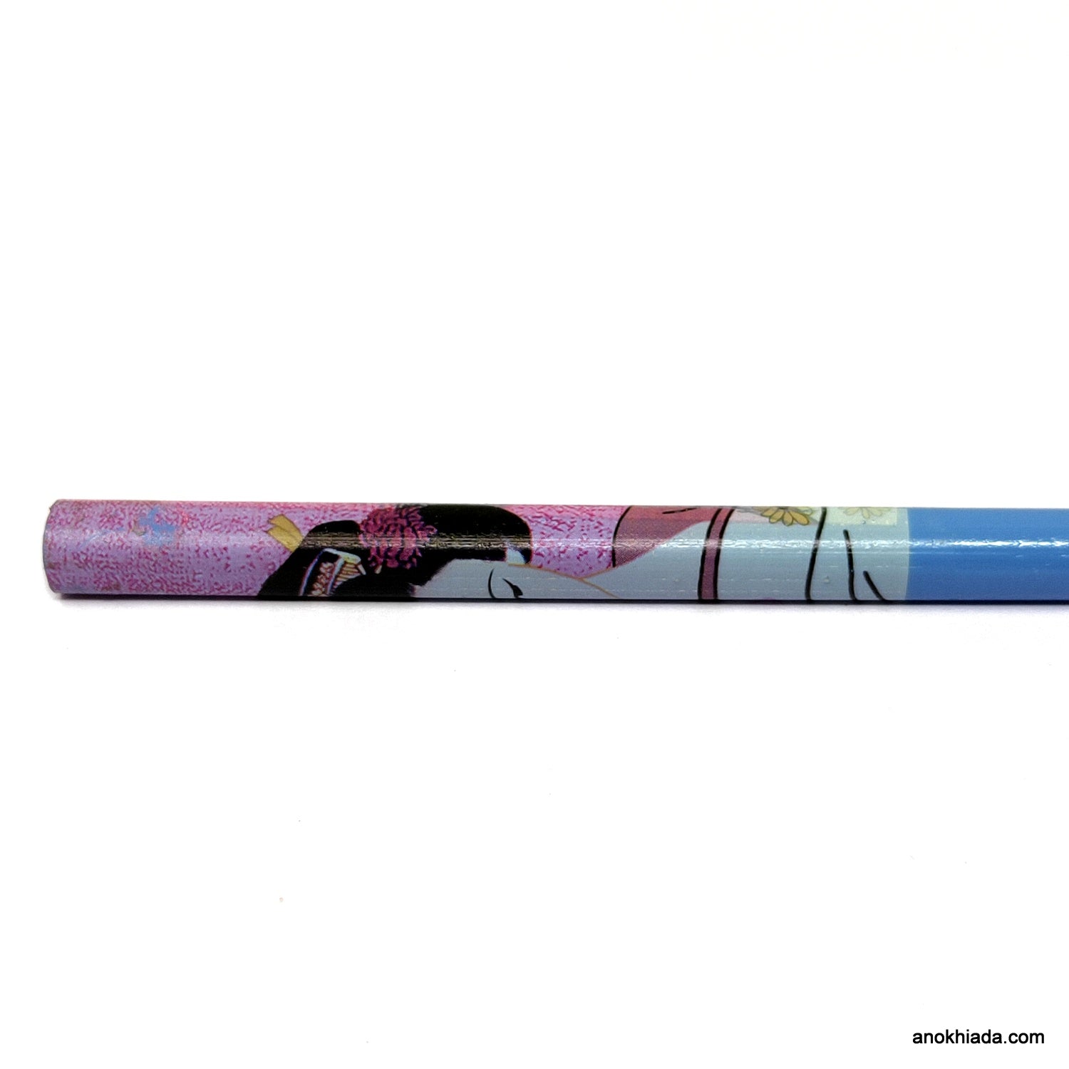 Anokhi Ada Doll Print Blue Wooden Juda Stick/Bun Stick - (99-13 Juda Stick)