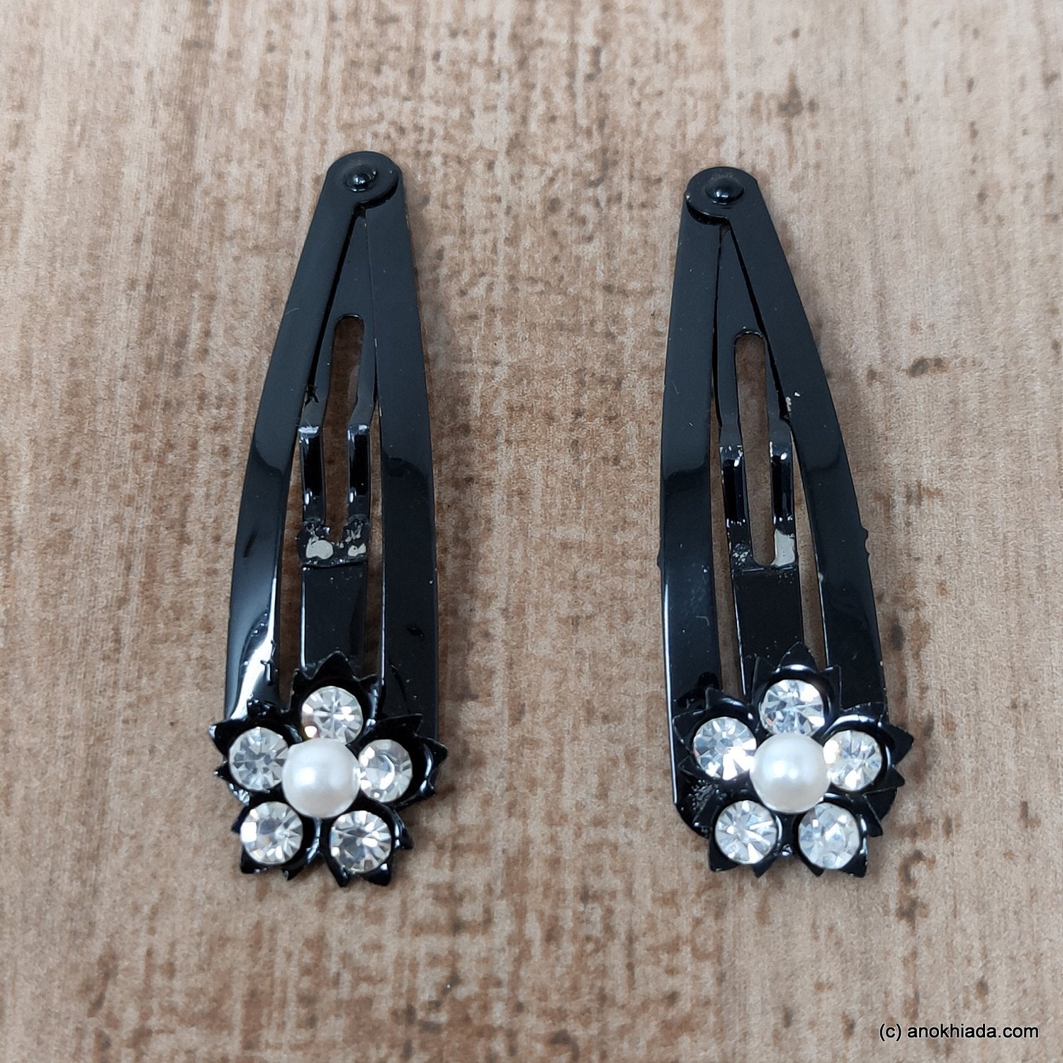 Anokhi Ada Floral Stone studded Tic Tac Hair Clip for Girls and Women - (BF-06)