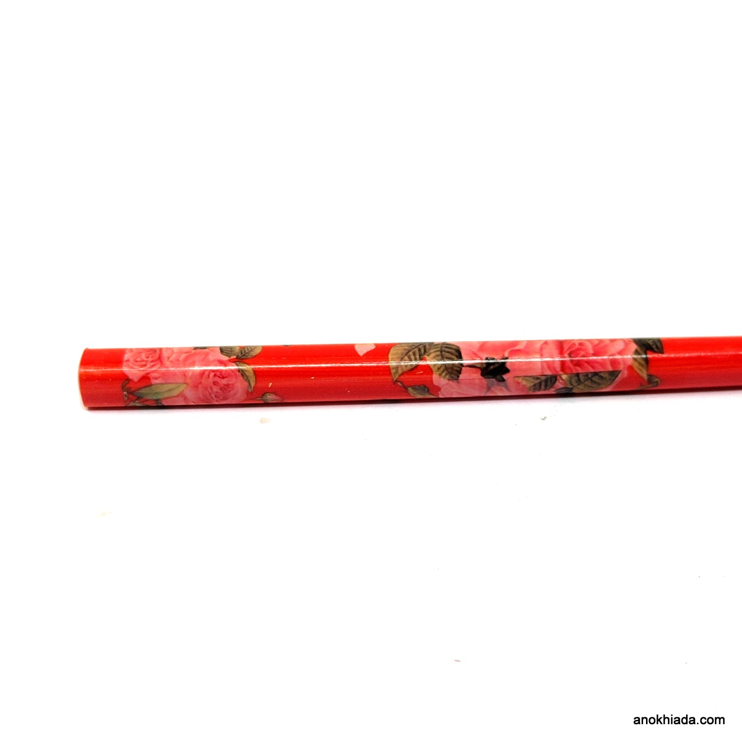 Anokhi Ada Flower Print Red Wooden Juda Stick/Bun Stick - (99-12A Juda Stick)