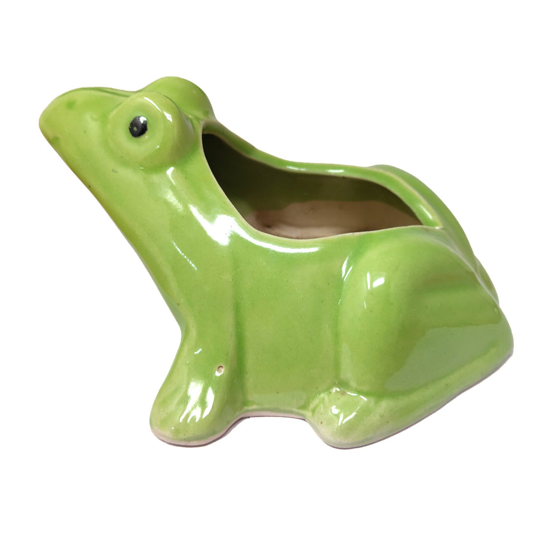 Anokhi Ada Frog Design Ceramic Planters Pots for Home Decoration ( Green, DA-006)