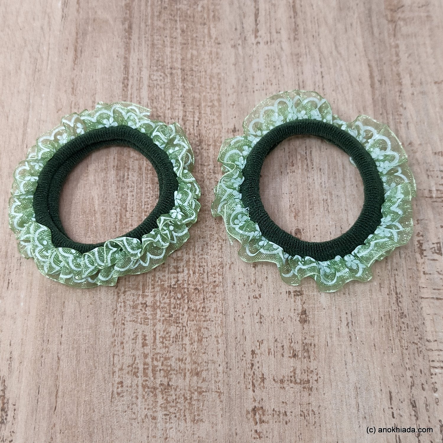 Anokhi Ada Green Hair Tie/Ponytail Holder for Girls and Women ( 2 Pcs, ZG-05 )
