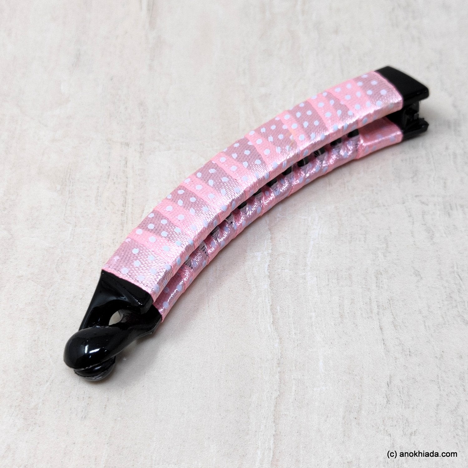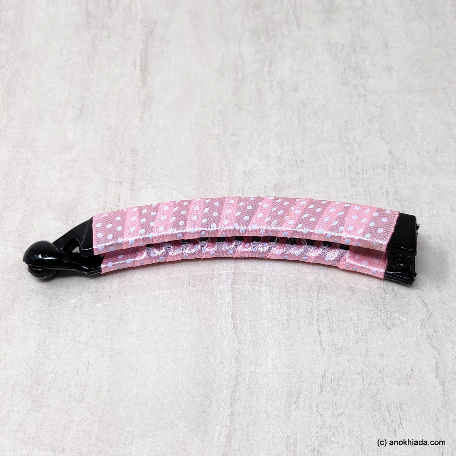Anokhi Ada Handmade Dot Print Ribbon Wrap on Banana Hair Clip for Girls and Women (Baby Pink)-ZI-28