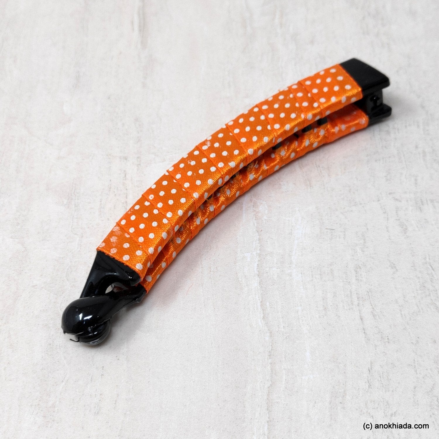 Anokhi Ada Handmade Dot Print Ribbon Wrap on Banana Hair Clip for Girls and Women (Orange)-ZI-23