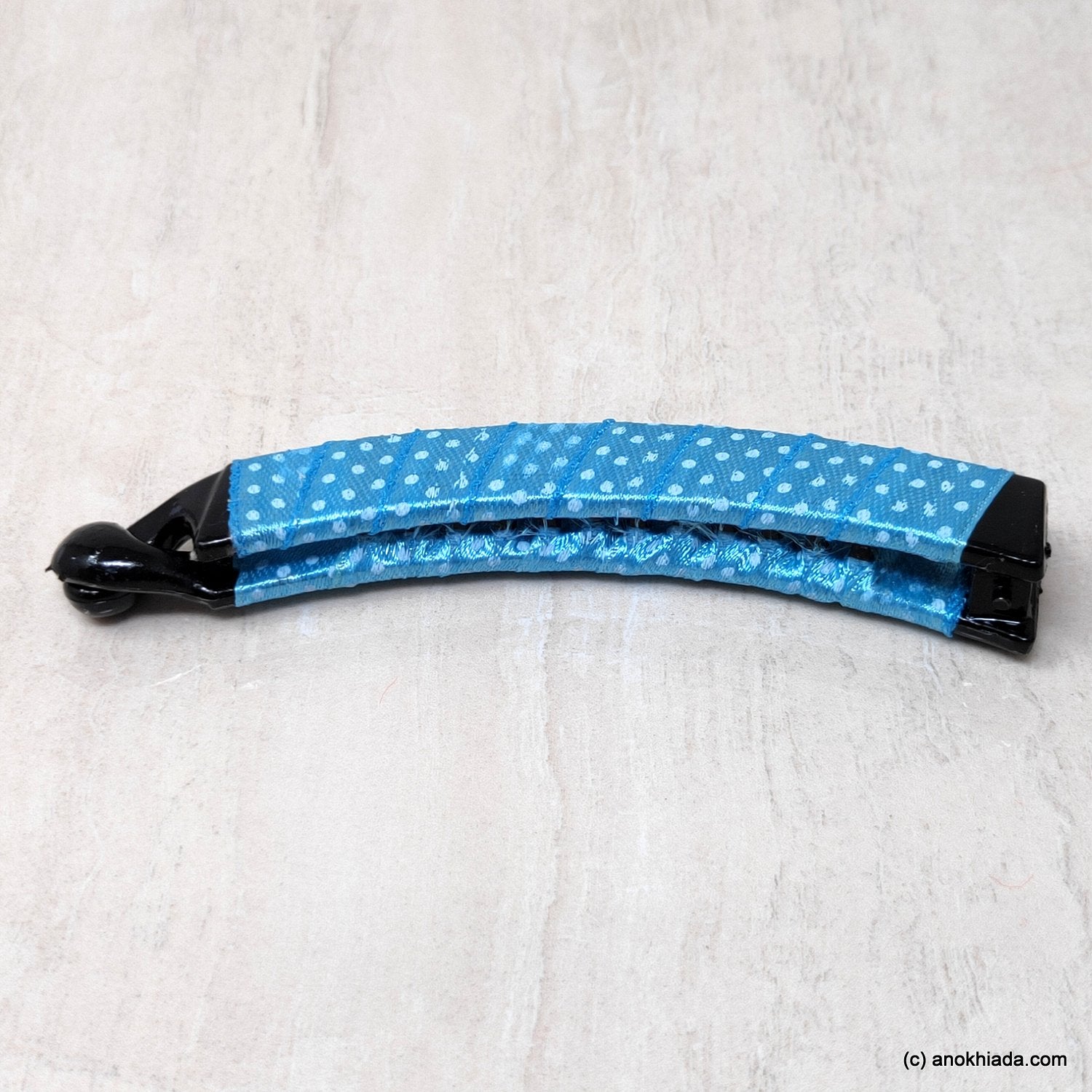 Anokhi Ada Handmade Dot Print Ribbon Wrap on Banana Hair Clip for Girls and Women (Turquoise)-ZI-27