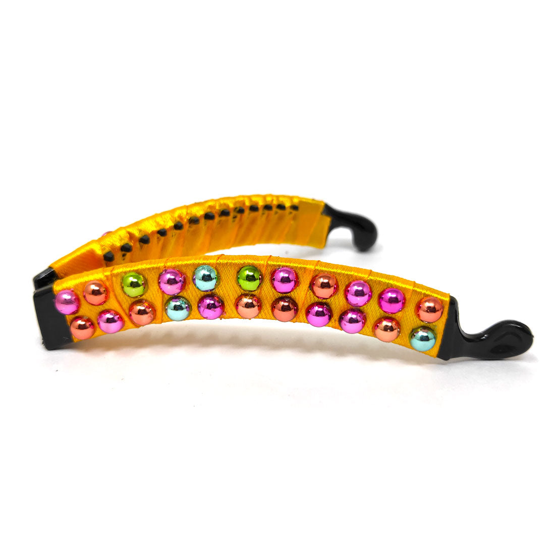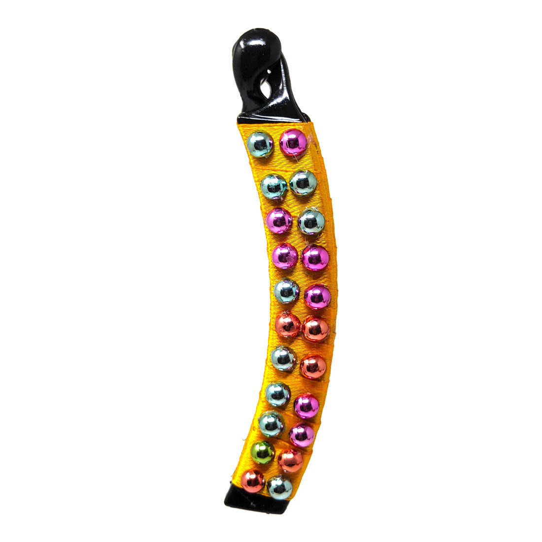 Anokhi Ada Handmade Pearl Banana Hair Clip for Girls and Women (Yellow with Multi-Colour Pearls)-ZI-07