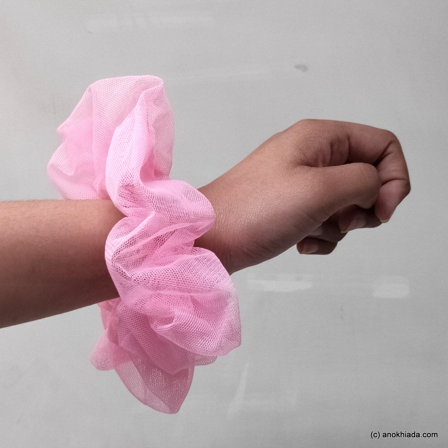 Anokhi Ada Handmade Stylish Pink Net Scrunchie for Girls and Women (15-203 Scrunchie)