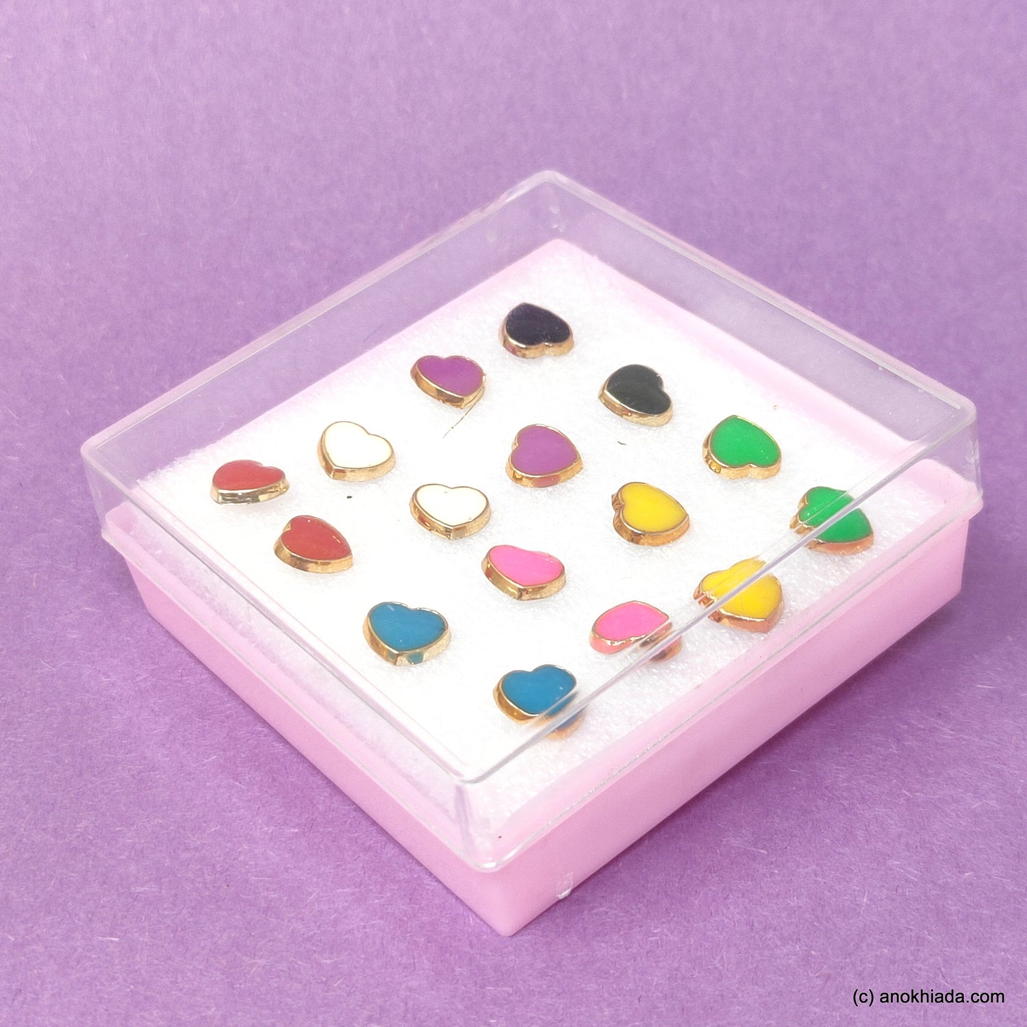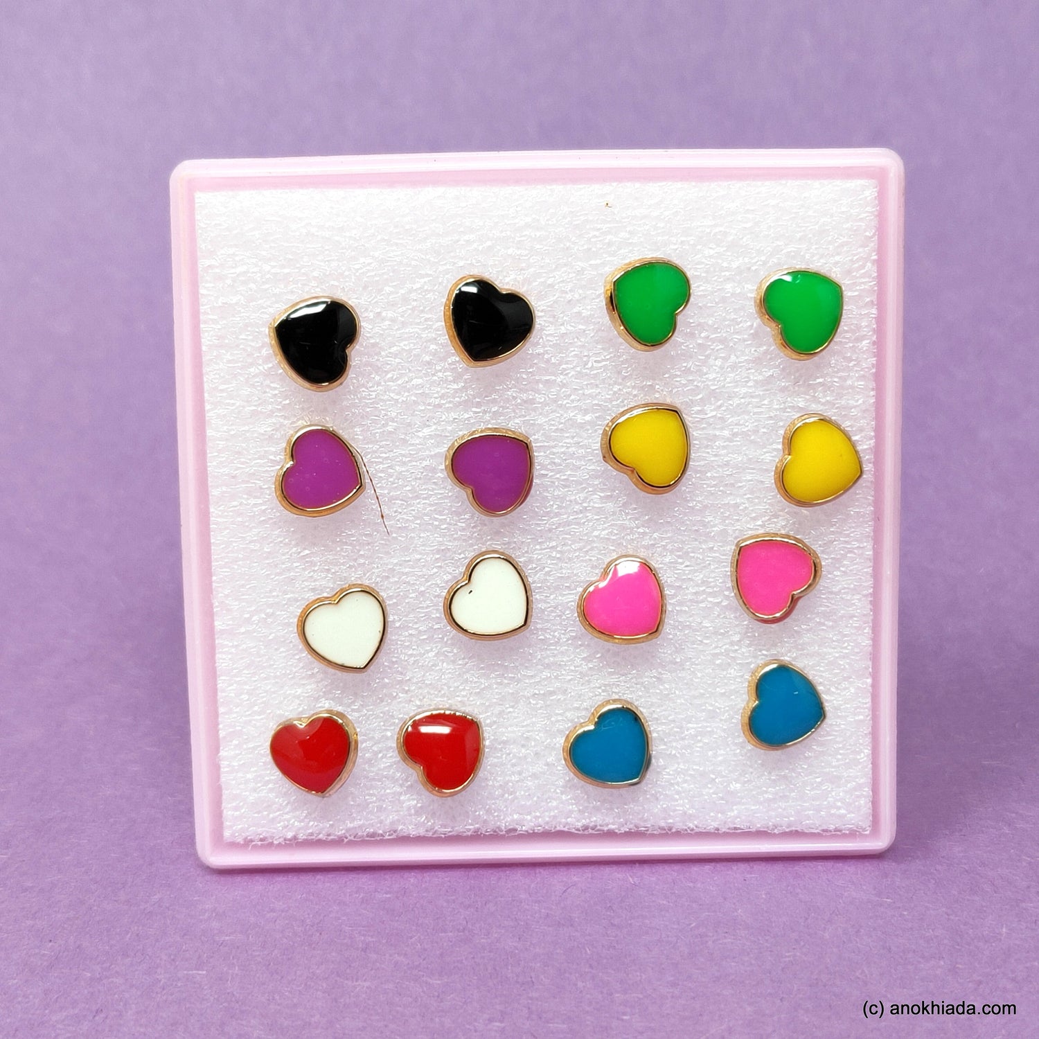 Anokhi Ada Heart Shaped Plastic Stud Earrings for Girls and Women (Multi-Colour, Pack of 8 Pairs)-AR-08-b
