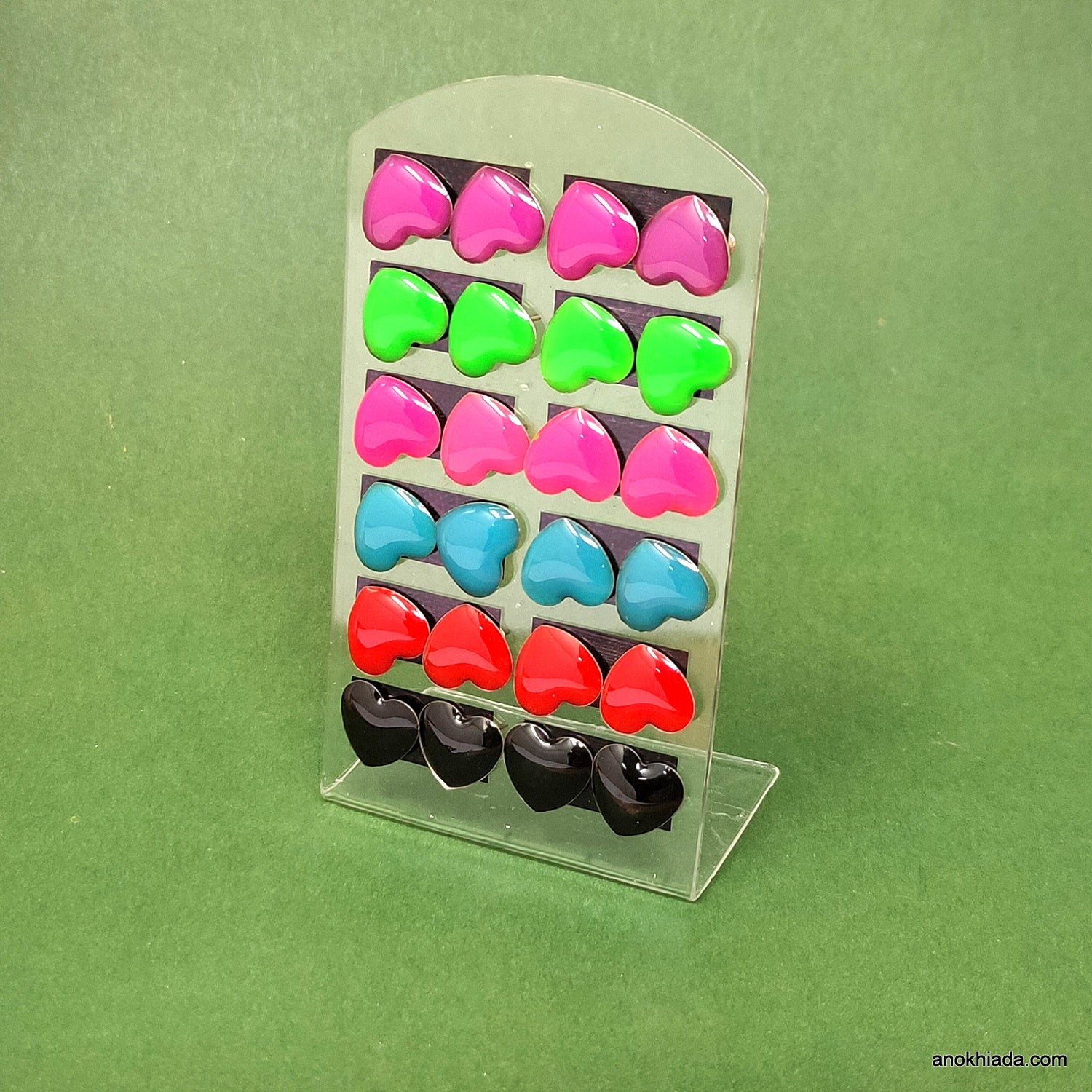 Anokhi Ada Heart Stud Earrings for Girls and Women (Multi-Colour, Pack of 12 Pairs)-AQ-03