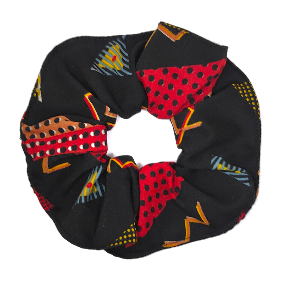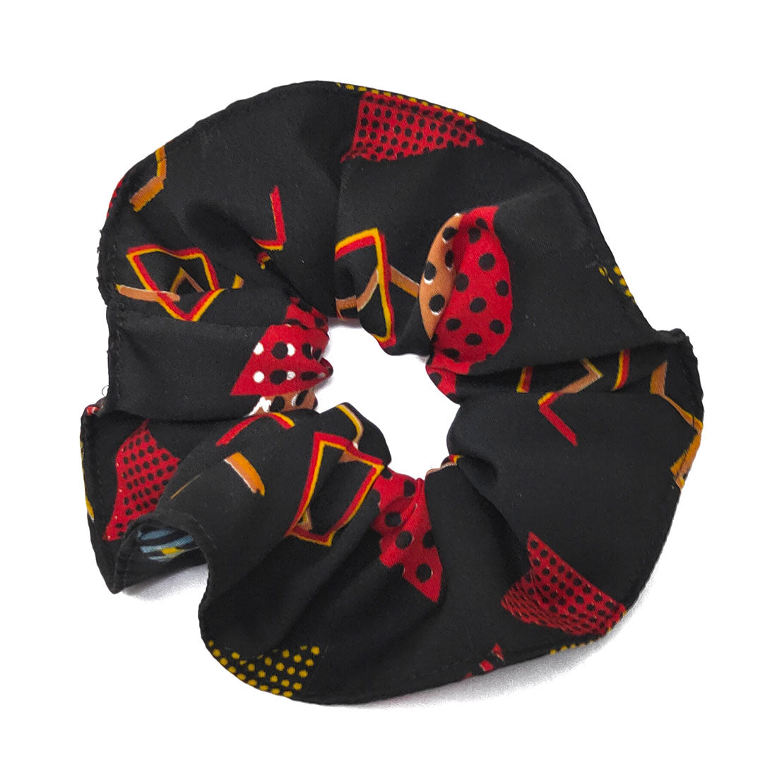 Anokhi Ada Handmade Large Printed Fabric Scrunchies/Ponytail Holders for Girls and Women (Black)-05-12H