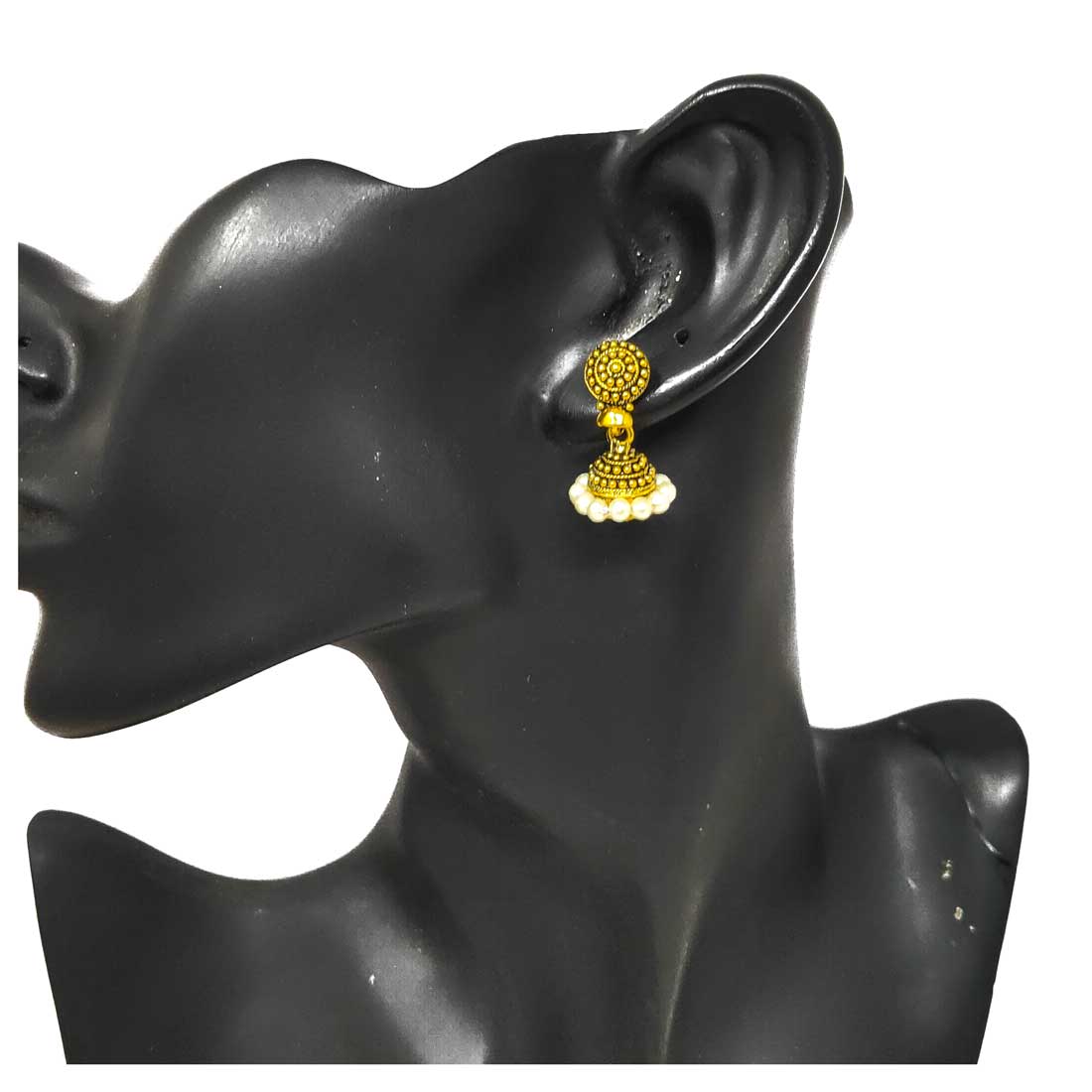 Metal Golden with White Pearls Chandelier Earrings for Girls and Women Best for Party wear with Matching Outfits