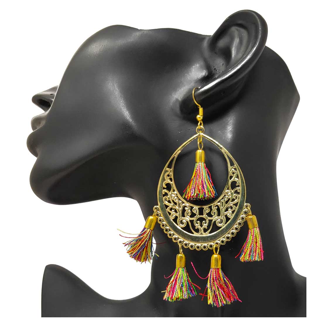 Metal Golden and Multi colour Tassel Dangle Earrings for Girls and Women for Party wear and wear with Multi colour Matching Outfits