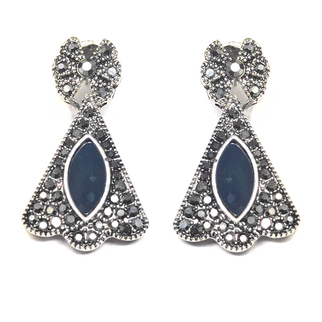Anokhi Ada Metal Drop and Dangle Earrings for Girls and Women (Silver and Black)-AJ-12