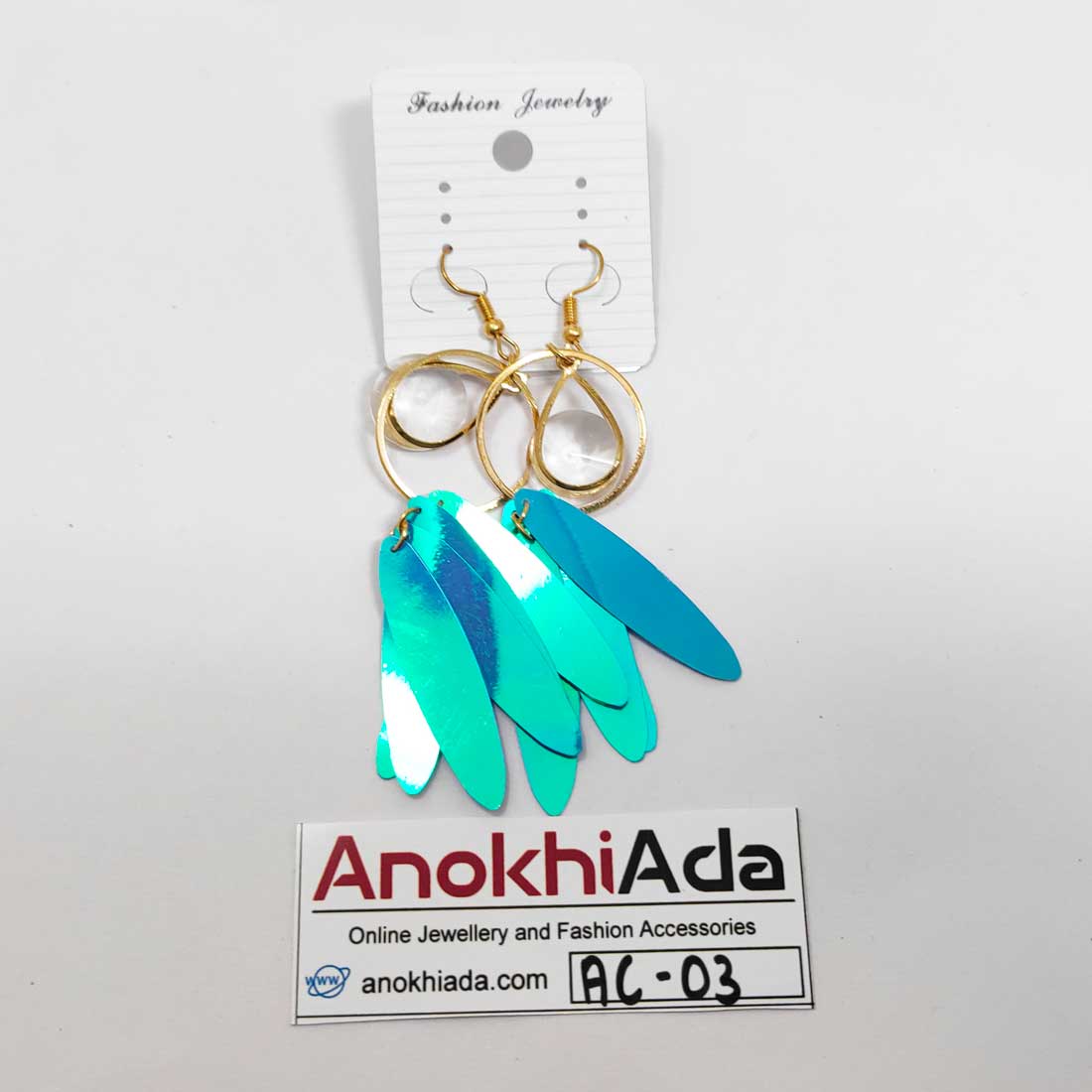 Anokhi Ada Metal Drop and Dangle Earrings for Girls and Women (Sky Blue and Golden)-AC-03