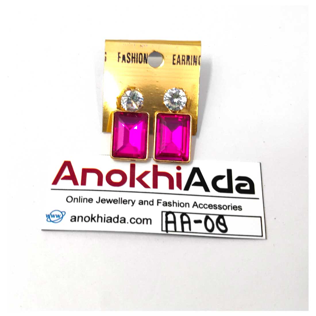 Anokhi Ada Metal Drop Earrings for Girls and Women (Dark Pink)-AA-08