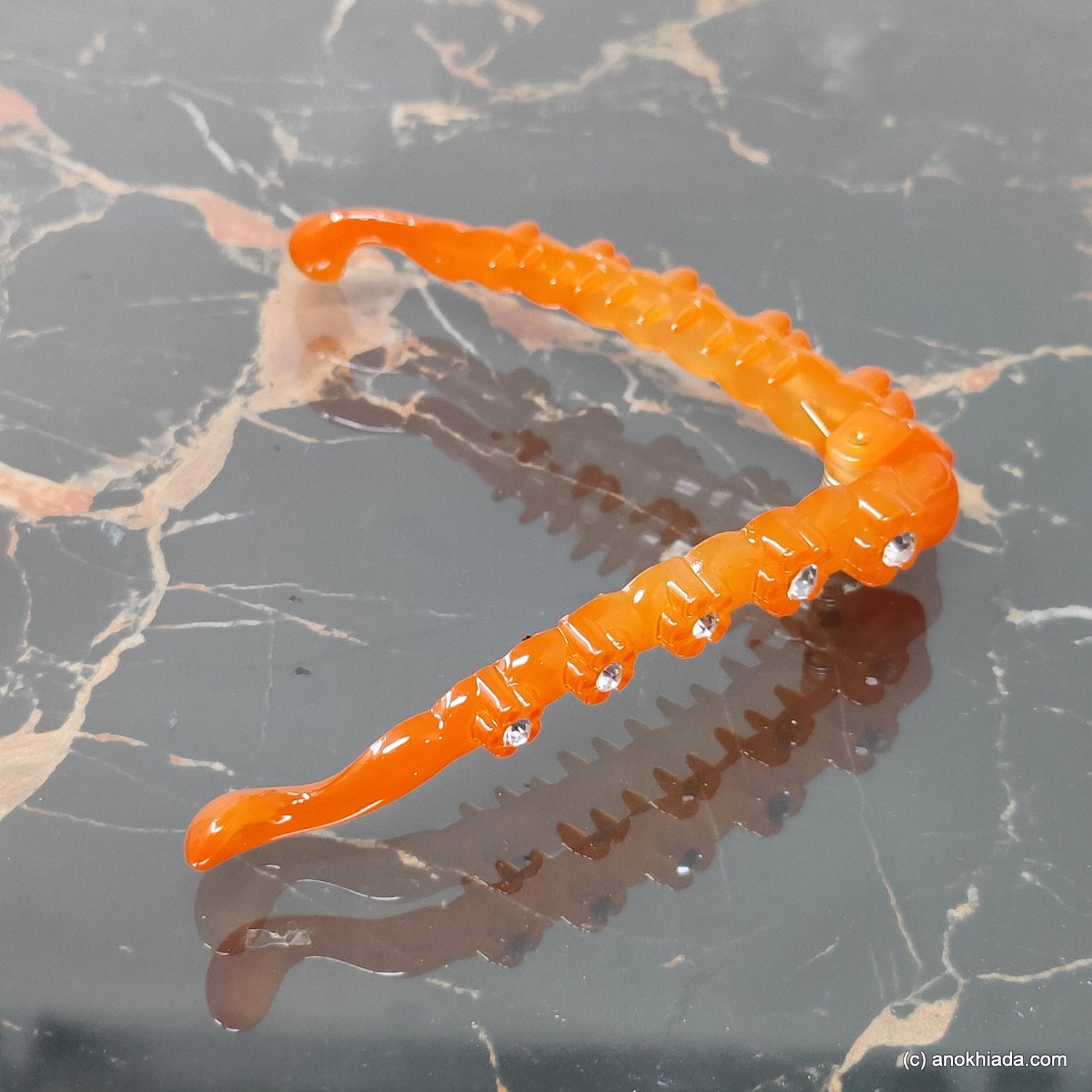 Anokhi Ada Orange Rhinestone Studded Floral Banana Hair Clips (BC-001e)