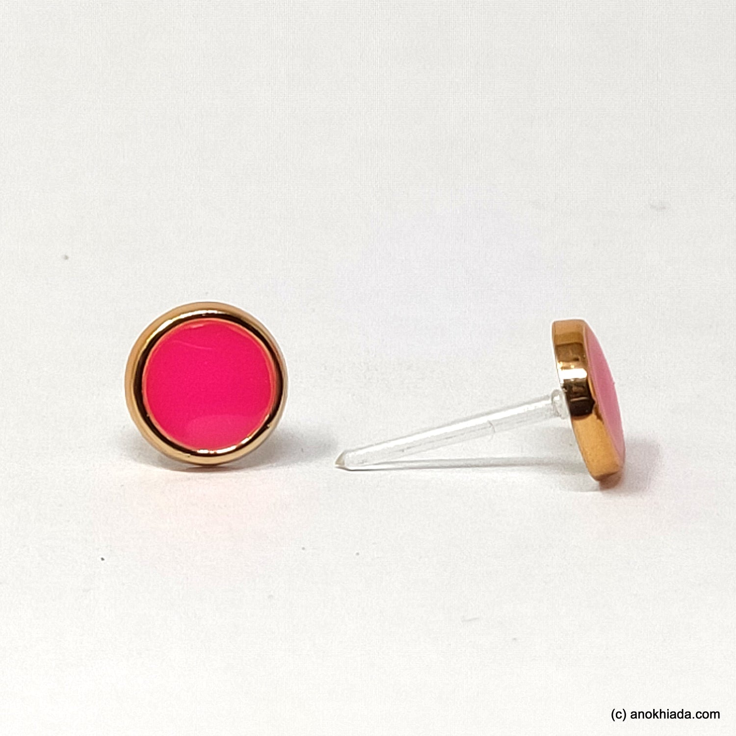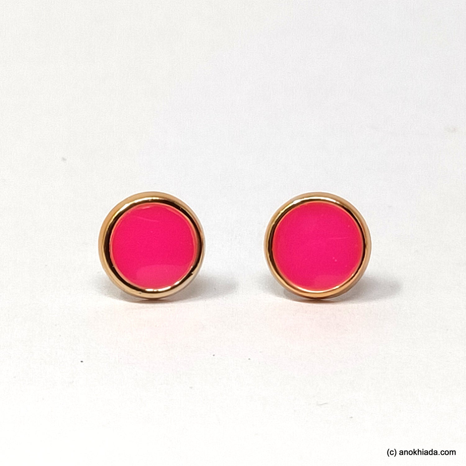 Anokhi Ada Pink Round Small Plastic Stud Earrings for Girls ( AR-20b)