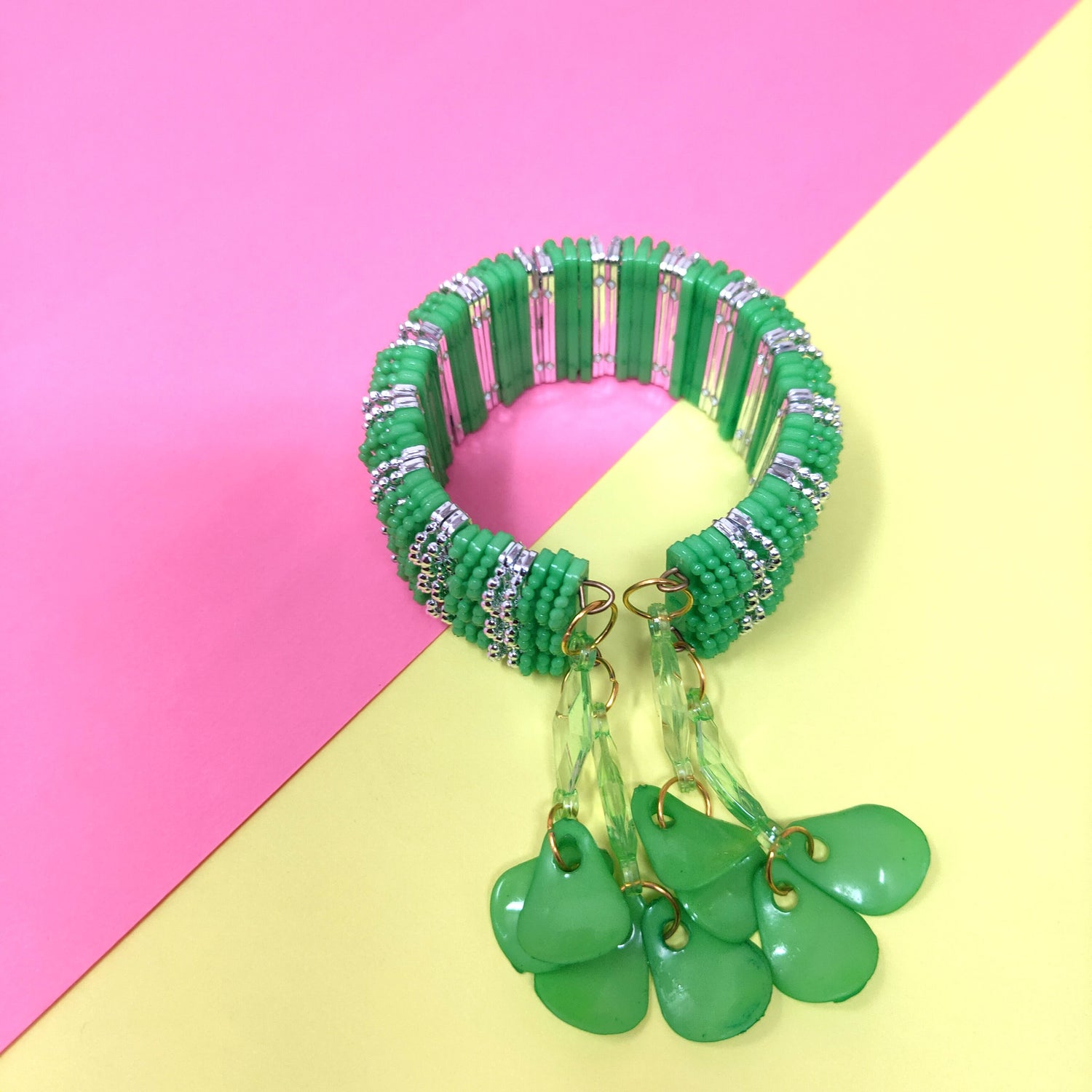 These Stylish Bracelet from Anokhi Ada is made of Plastic Fiber. Perfect for Girls, Kids Stylish and Trendy Latkan Cuff Bangle Bracelet - Stylish for all occasions / Festivals. We have many Beautiful Colours and Variety.