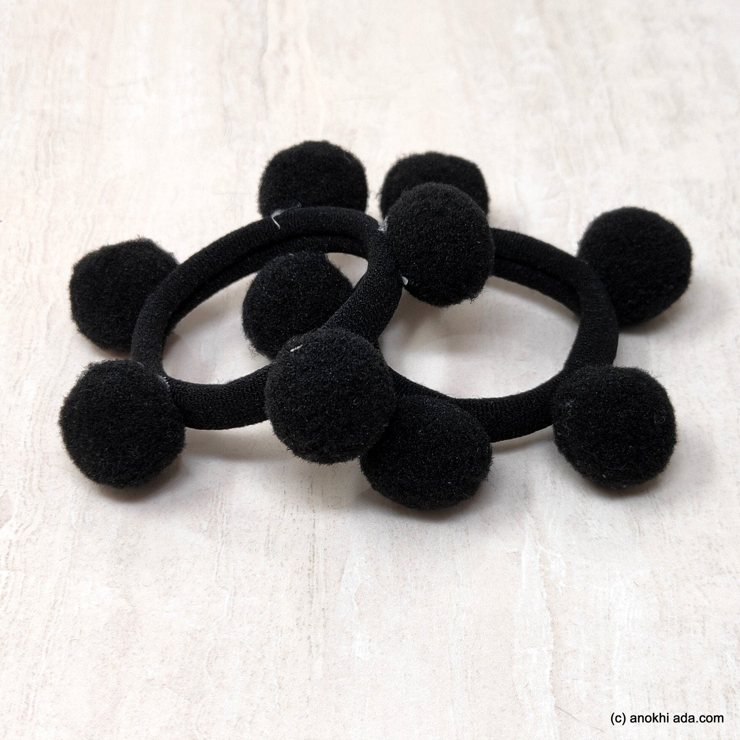 Anokhi Ada Pom Pom Balls Hair Ties/ Ponytail Holders for Kids and Girls (Set of 2 Ponytail Holders, Black)-ZG-24
