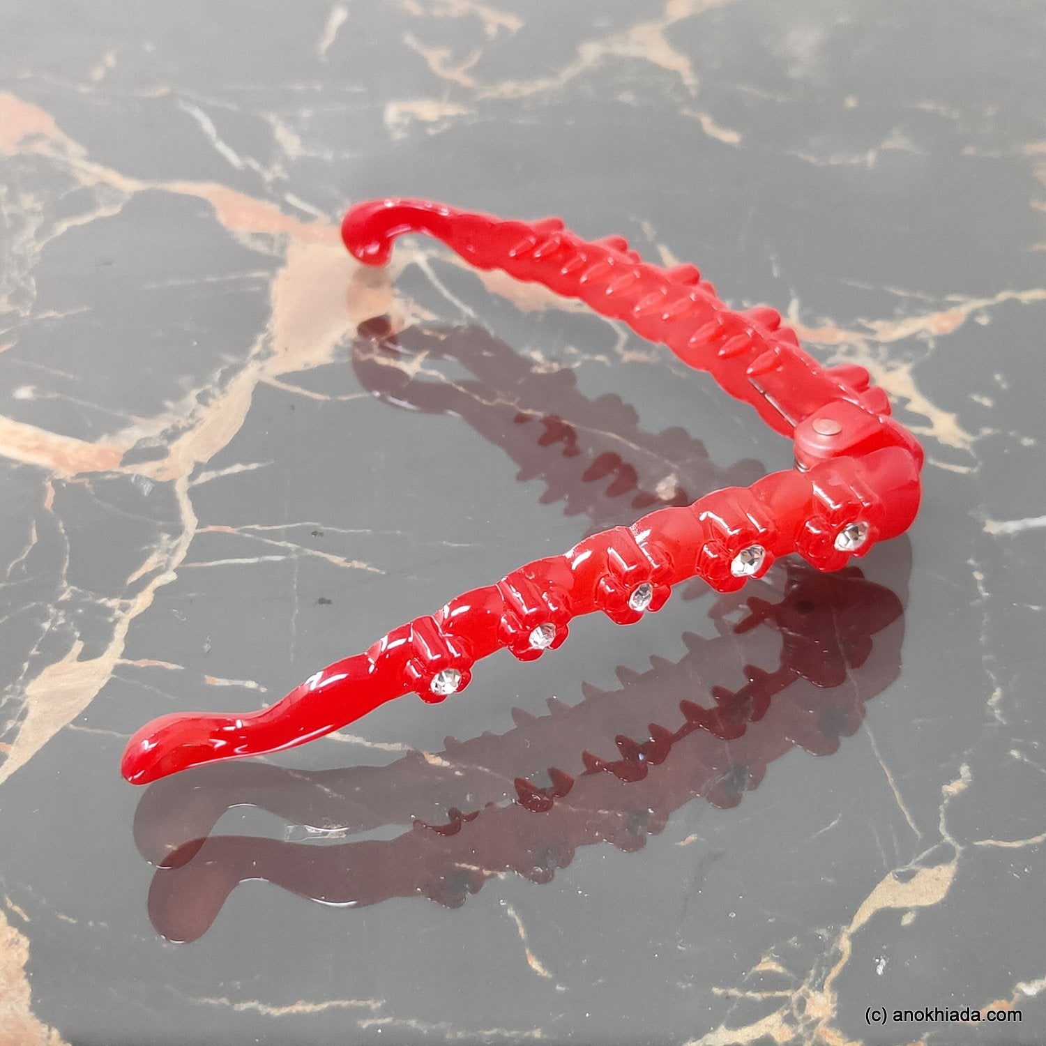 Anokhi Ada Red Rhinestone Studded Floral Banana Hair Clips (BC-001a)