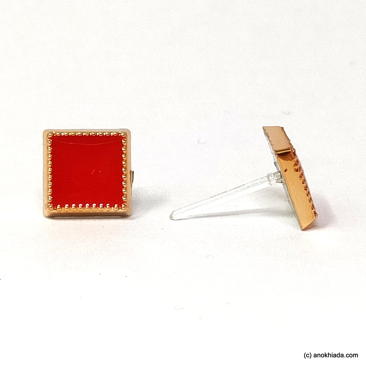 Anokhi Ada Red Square Shaped Small Plastic Stud Earrings for Girls ( AR-20j)