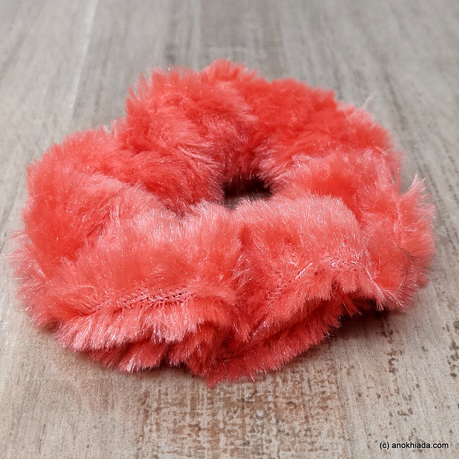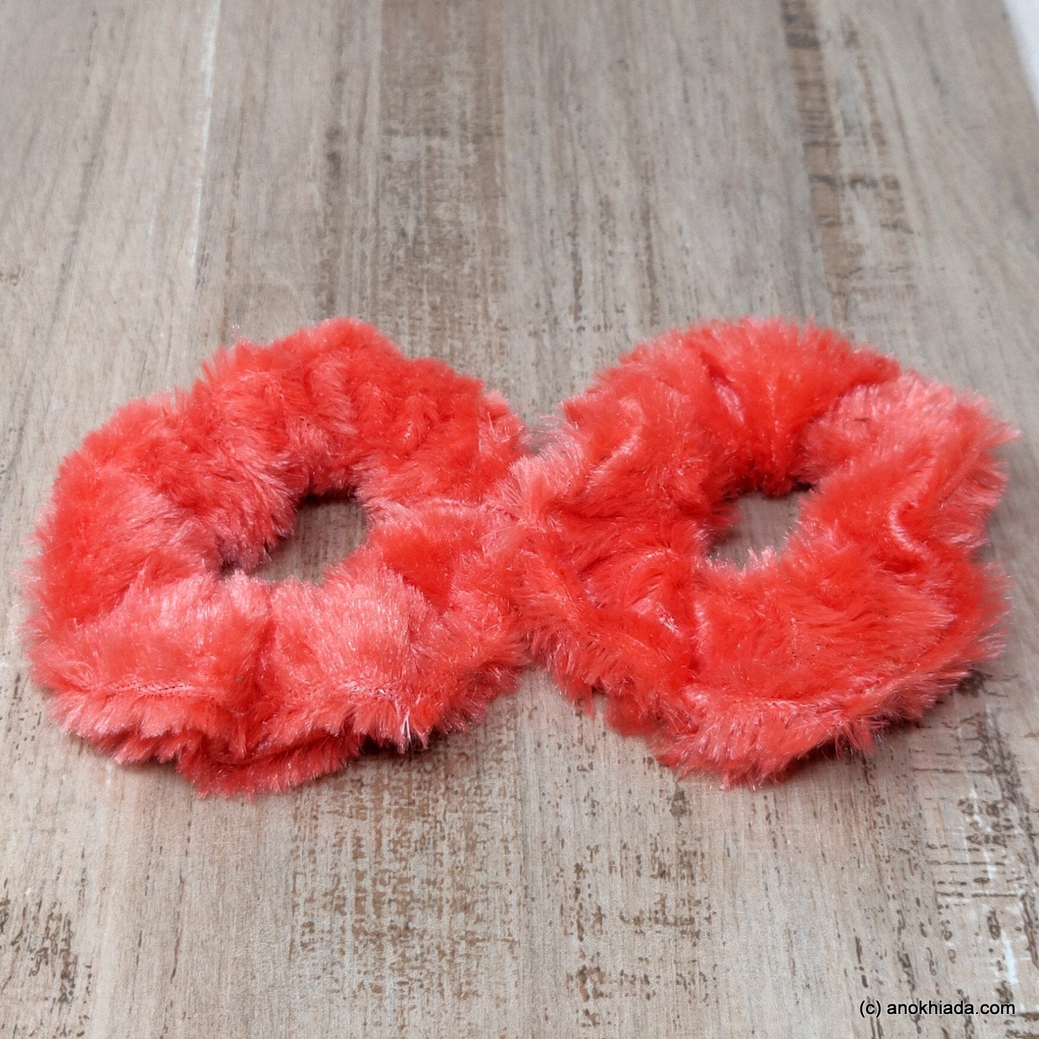 Anokhi Ada Rose Red Small Fur Scrunchie for Girls and Women ( 2 Pcs, ZG-77 )