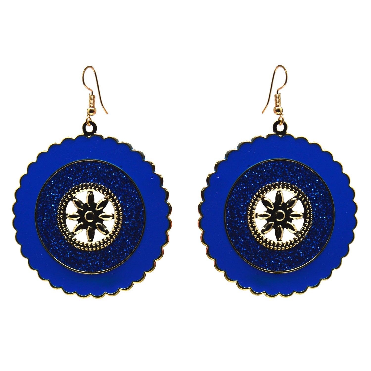 The Round Dangle & Drop Earring from Anokhiada.com can be used as Daily Wear, Fancy Wear. Anokhi ADA Round Dangle & Drop Earring is a must have for your Jewllery collection. The package contains One Pair of Earrings. The Round Dangle & Drop Earring is made of Metal and is available in Blue Colour. Dimensions of the above product is 7 cm X 5.5 cm. The Round Dangle & Drop Earring is ideal for Girls and Women.