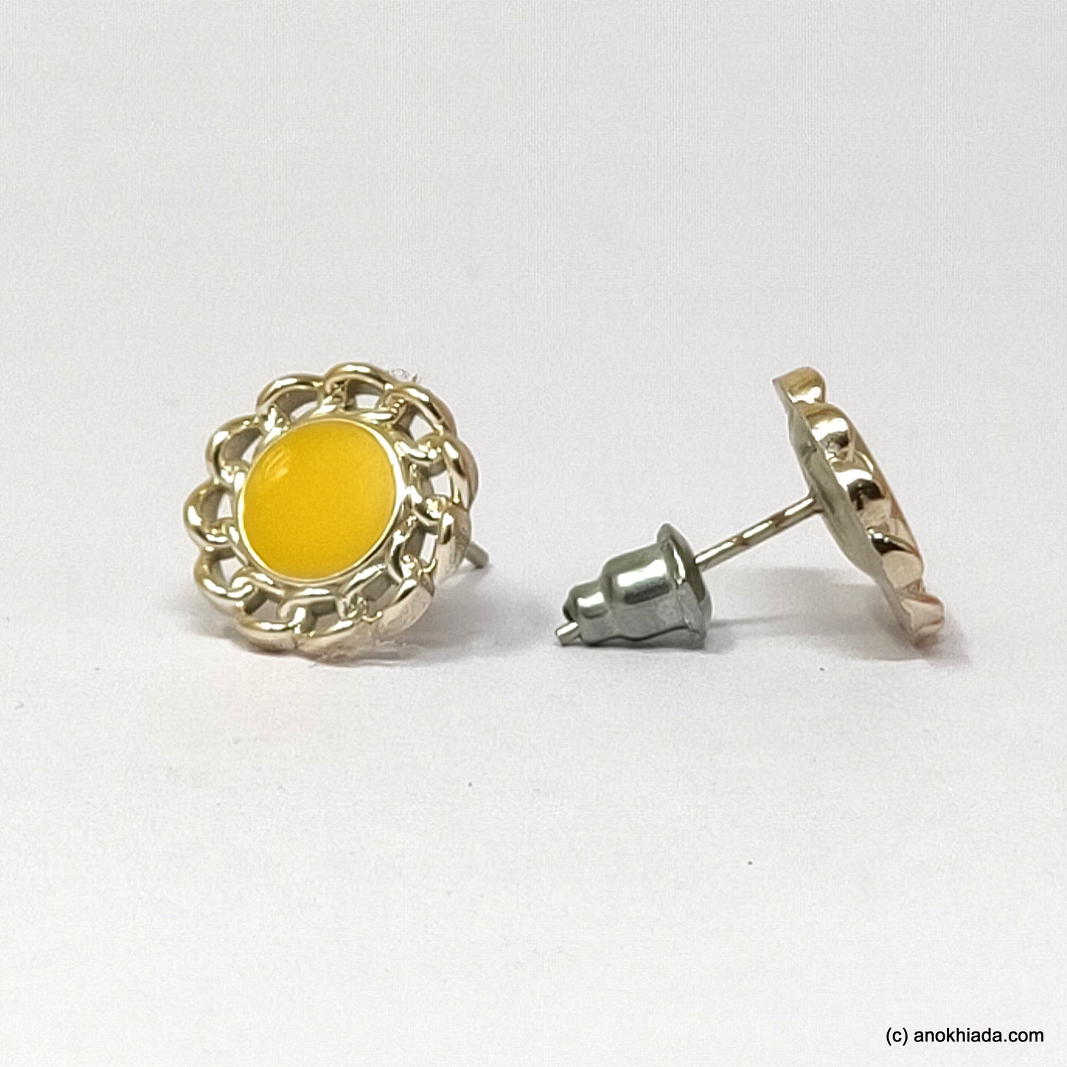 Anokhi Ada Round Small Plastic Stud Earrings for Girls ( Yellow, AR-21c)