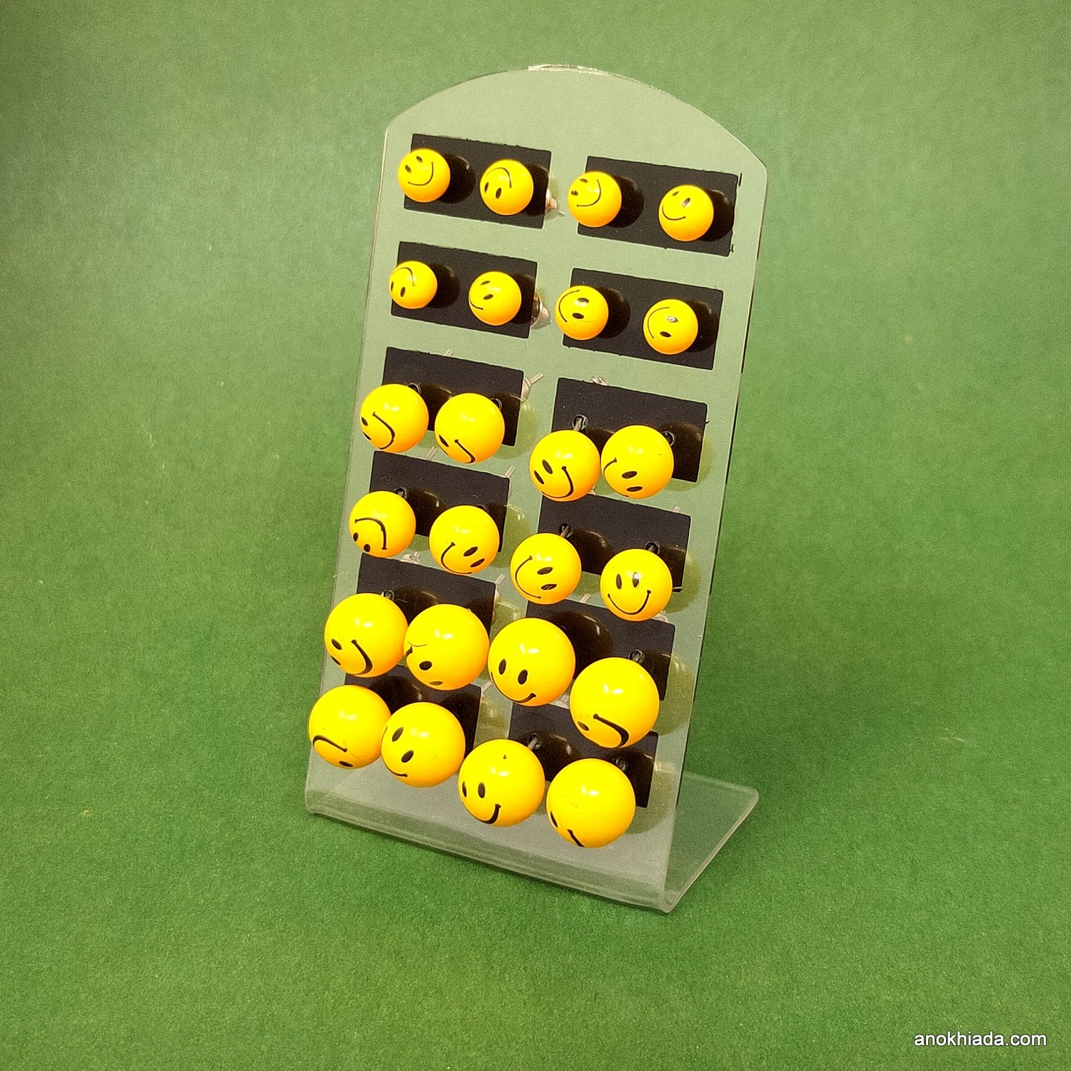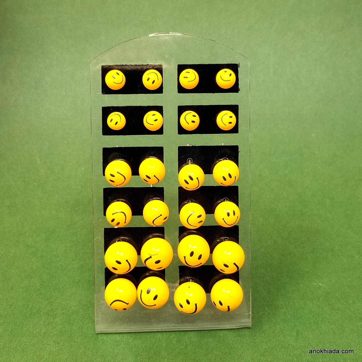 12 Pairs of Round Smiley Stud Earrings for Girls and Women. These are Ideal for Girls and Women Stud Earrings Combo with Metal Back Pin.