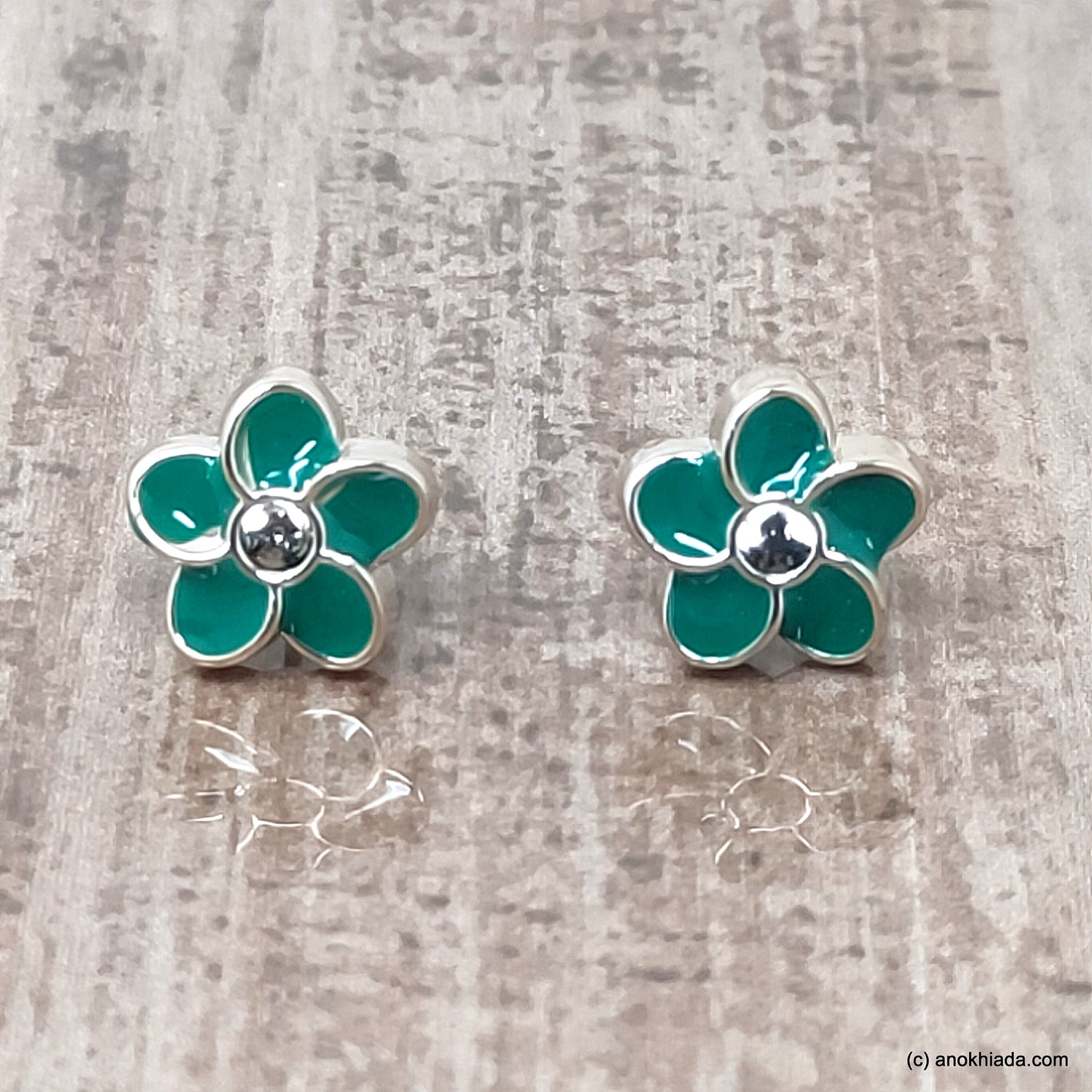 Anokhi Ada Small Floral Plastic Stud Earrings for Girls ( Green, AR-26a )