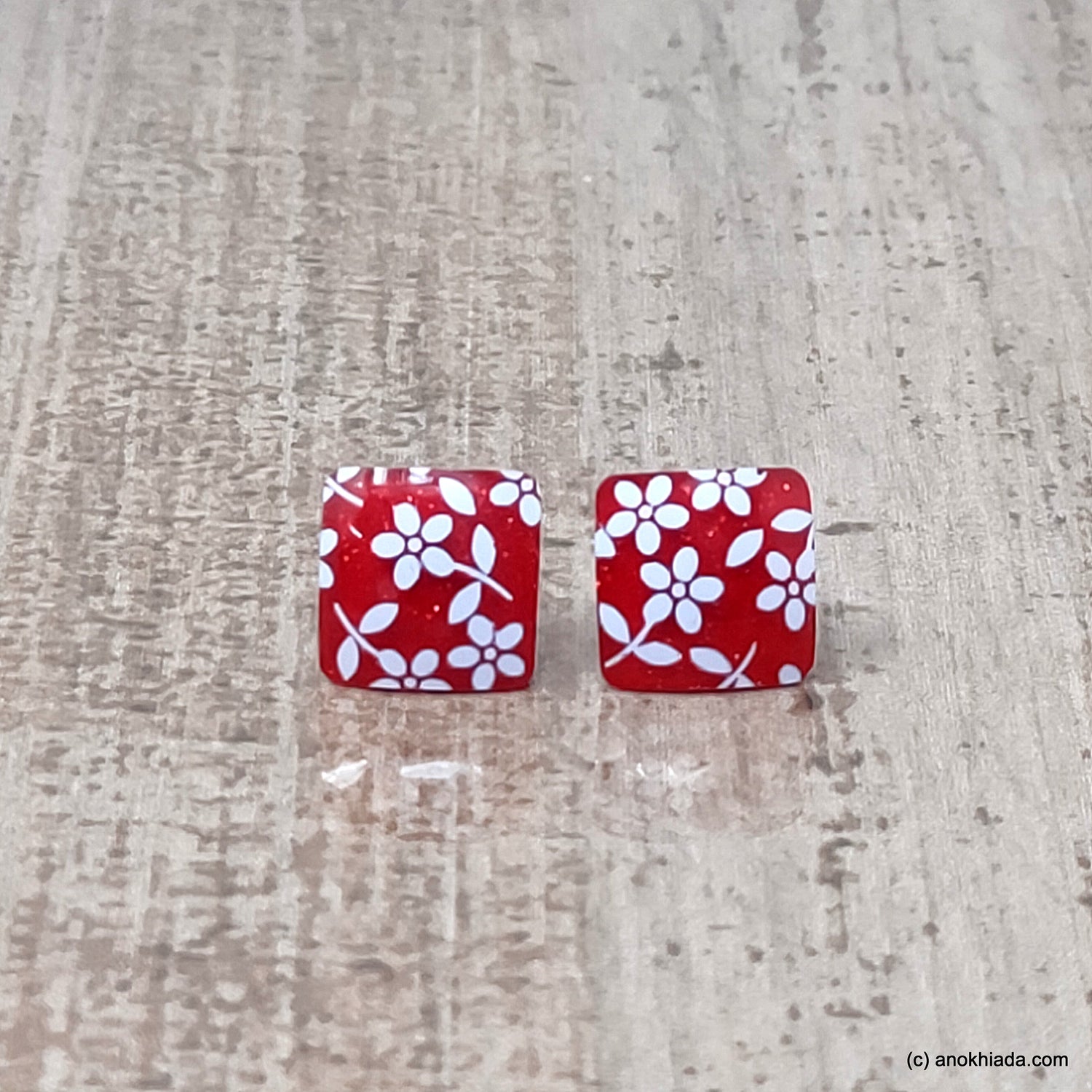 Anokhi Ada Small Square Plastic Stud Earrings for Girls ( Red, AR-28b )