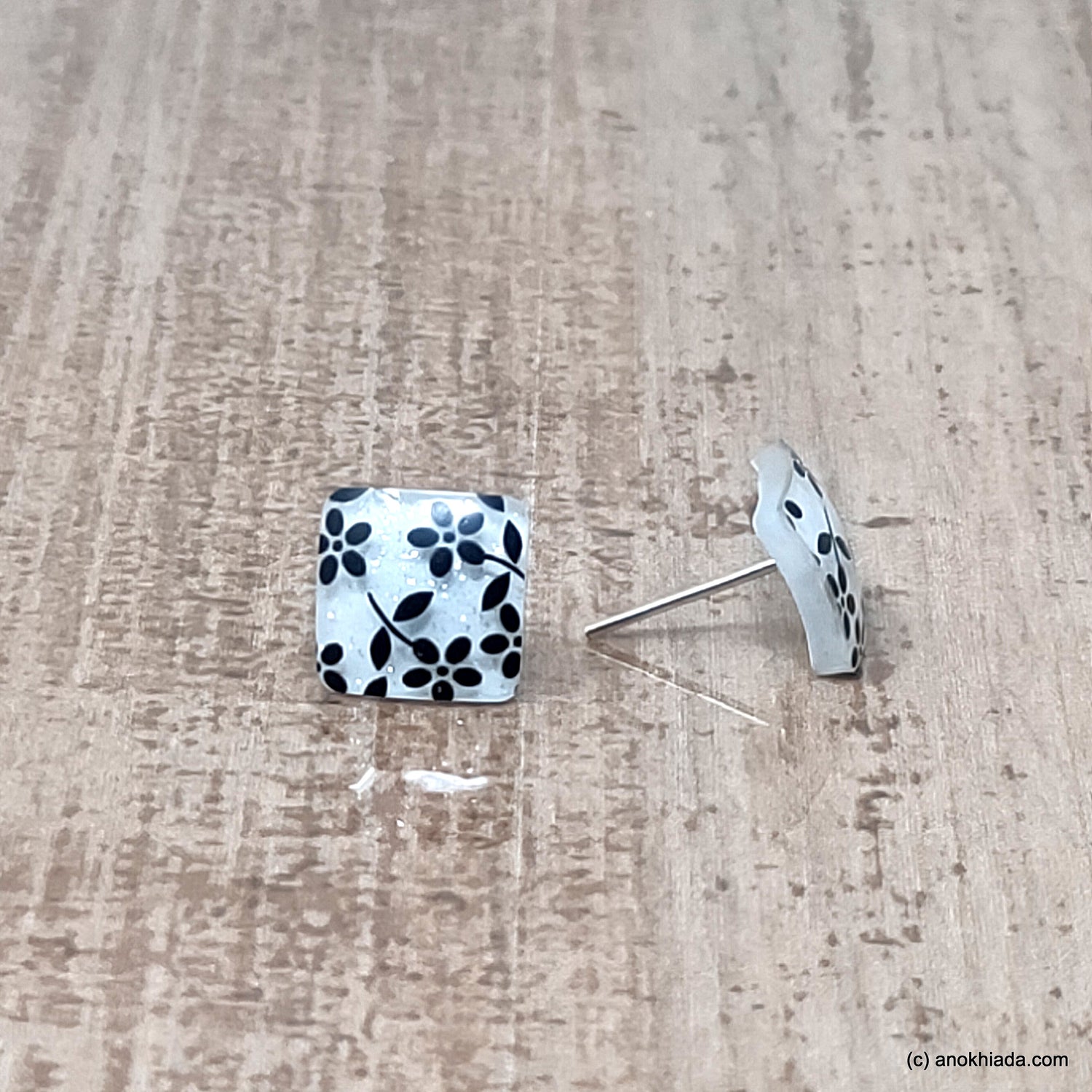 Anokhi Ada Small Square Plastic Stud Earrings for Girls ( White, AR-28c )