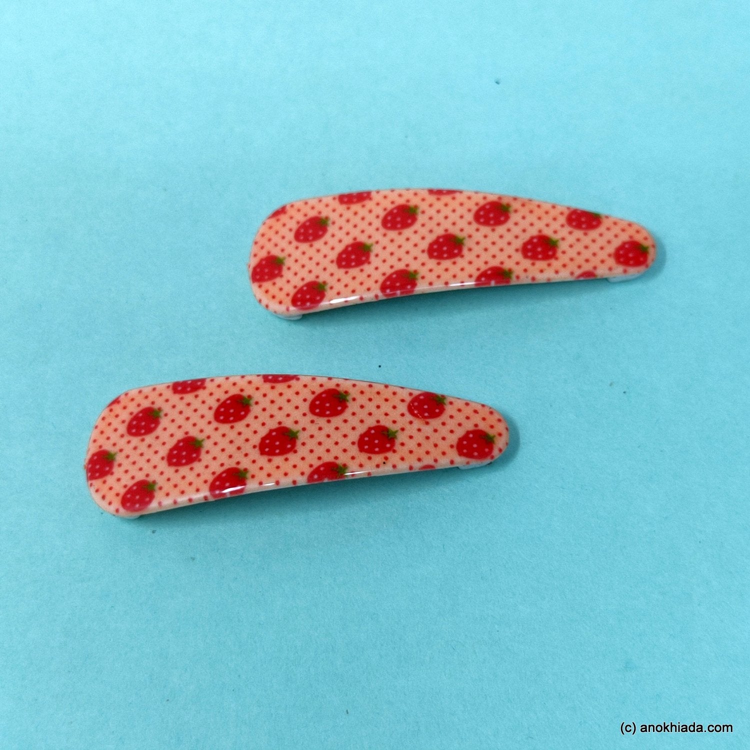 - Design: Strawberry Print Plastic on Metal Tic Tac Hair Clips