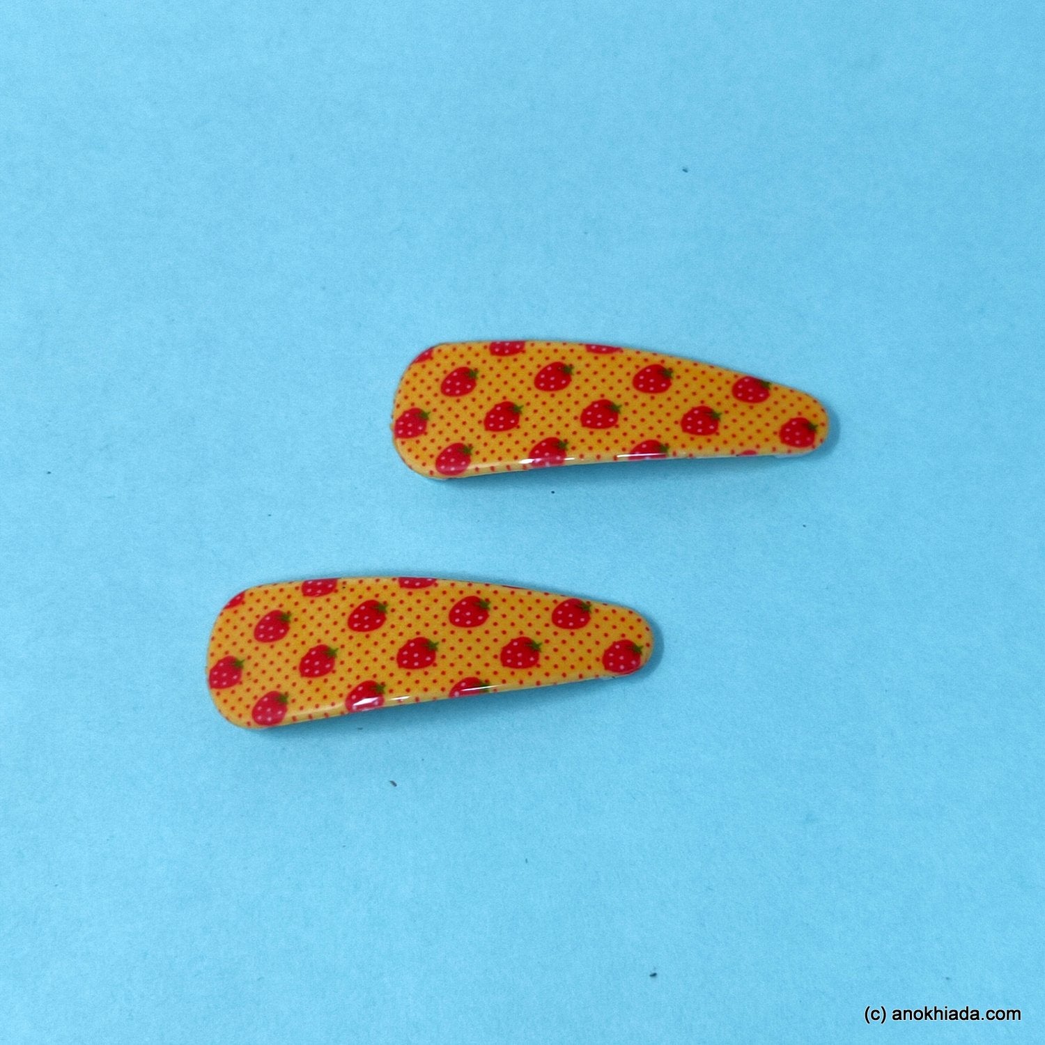 - Design: Strawberry Print Plastic on Metal Tic Tac Hair Clips