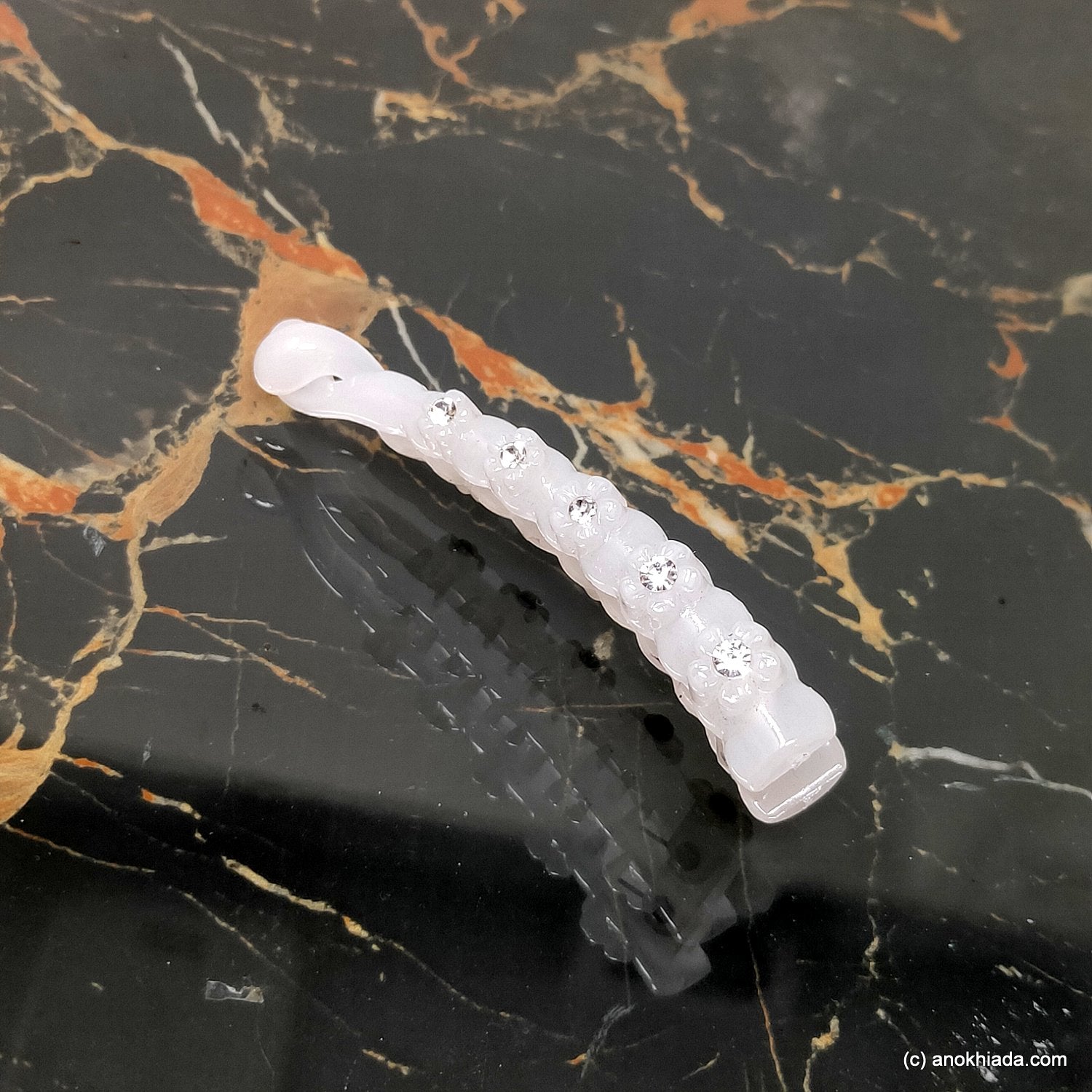Anokhi Ada White Rhinestone Studded Floral Banana Hair Clips (BC-001f)