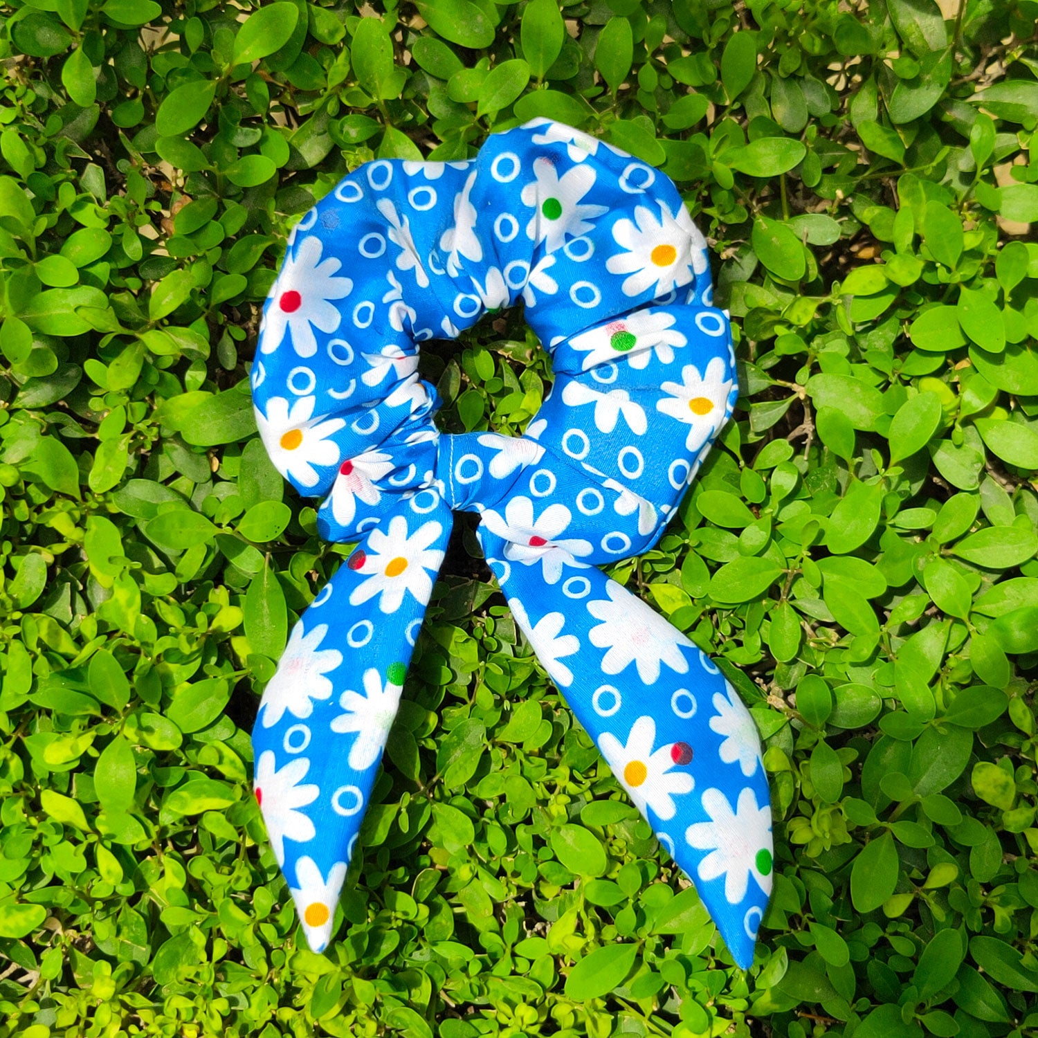- Color: Multi-Color with Floral Print Cotton Bunny Ear Scrunchie