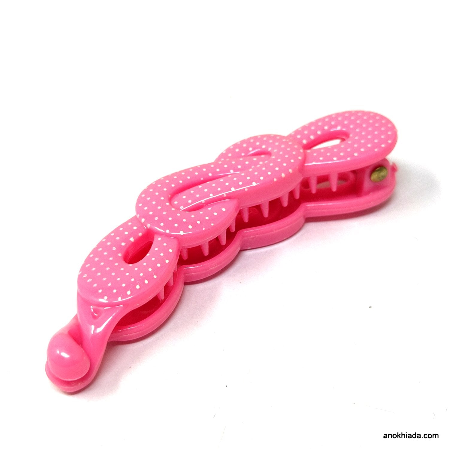 Dot Print Infinity Design Small Pink Banana Hair Clip for Girls & Woman (98-12H Banana Hair Clips)