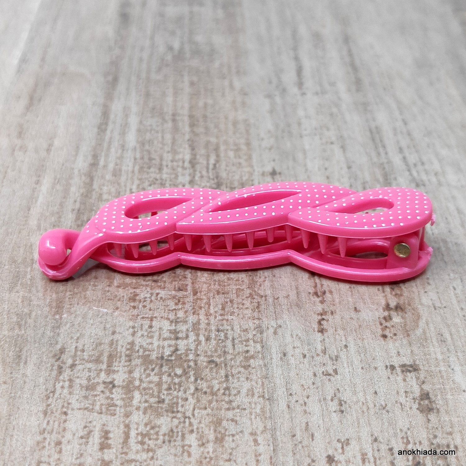 Dot Print Small Dark-Pink Banana Hair Clip for Girls & Woman (98-11L Banana Hair Clips)