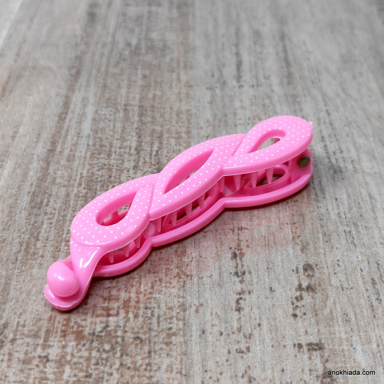 Dot Print Small Pink Banana Hair Clip for Girls & Woman (98-11H Banana Hair Clips)