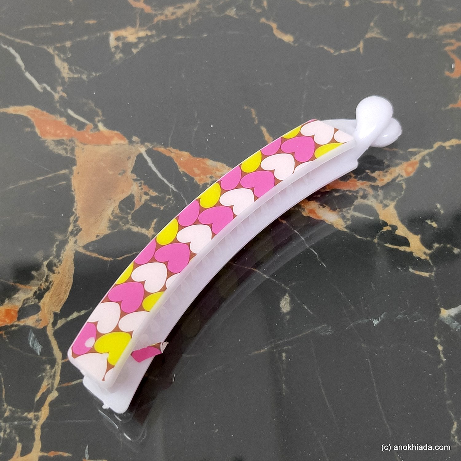 - Package contents: 1 Heart Print Banana Hair Clip