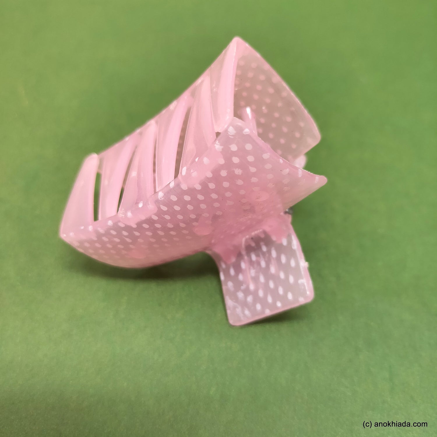 This Translucent Hair Claw from Anokhi Ada is made of plastic. This is a medium sized claw for girls and women. This claw is ideal for everyday usage as well as party wear.