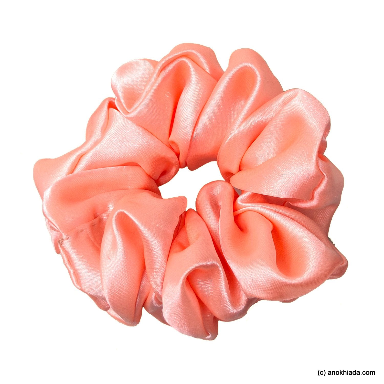 These scrunchies are made of satin. We make them super comfy for your hair as well as your hand. The colour of the scrunchie is Peachy Keen.