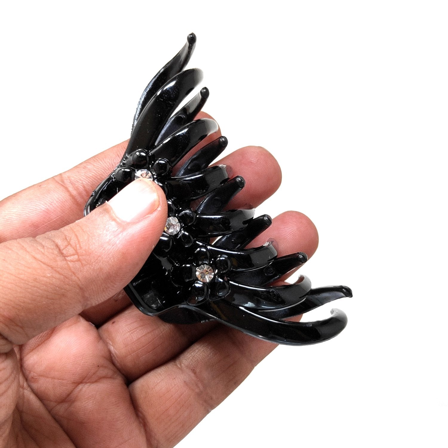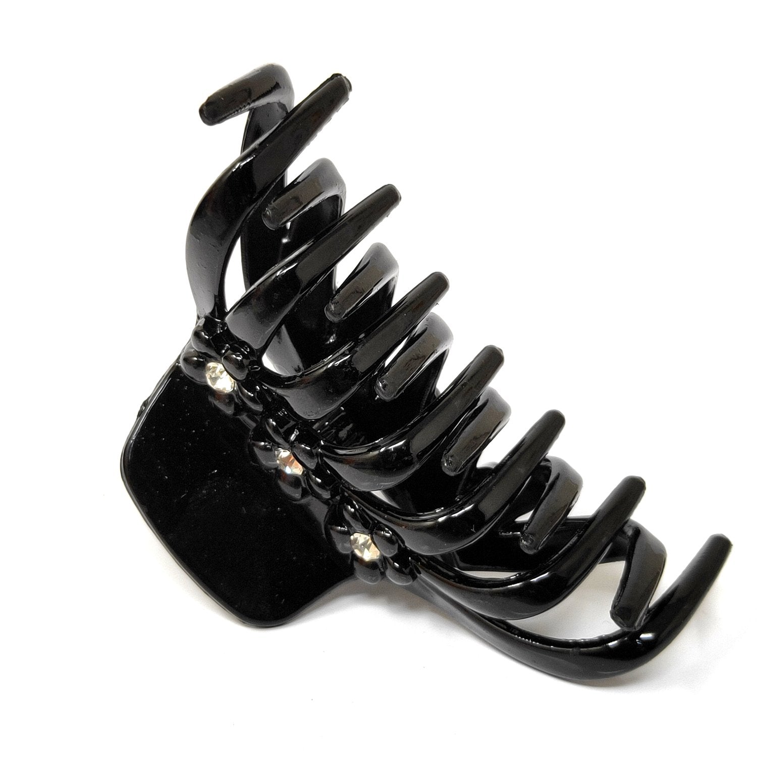 Rhinestone Studded Large Unbreakable Plastic Hair Clutcher for Girls and Women (Black, ZA-25)